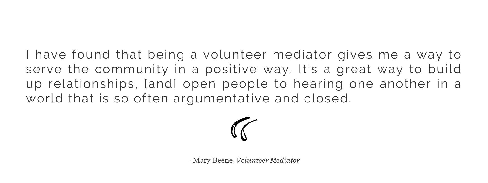 Help us build community capacity to address conflict at an early stage. Attend our next Community Mediation Class and build your key mediator skills: listening with intent, asking engaging questions, and using de-escalation techniques.